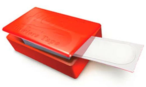 Storm’s thumb tape available in pre-cut pieces and stored in a handy plastic, reusable box. Each box contains 30 pieces of tape, pre-cut for a perfect fit.